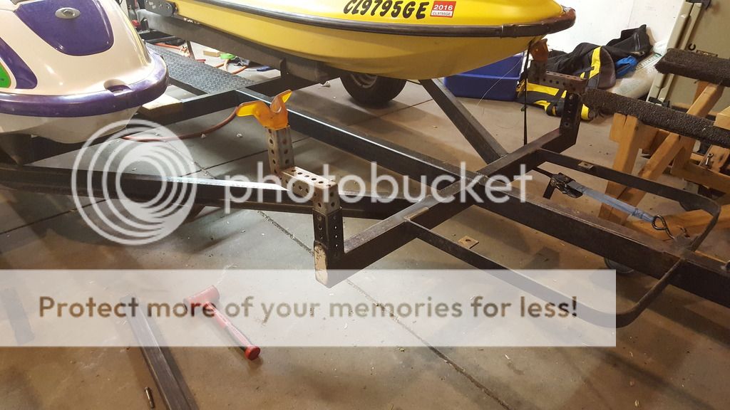 I need ideas for a bow stop on my new trailer. The problem is that the trailer frame curves in under the ski so the nose of the ski is out in space with nothing to mount to. Make sense?